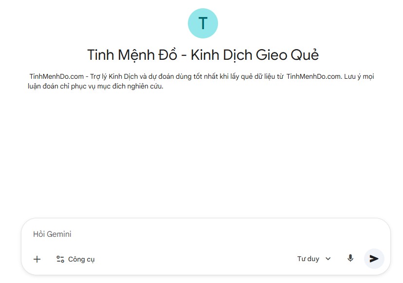Công cụ giải gieo quẻ AI vào app (Lưu ý đúng app) “Tinh Mệnh Đồ - Kinh Dịch & Dự Đoán” trên nền tảng Gemini.